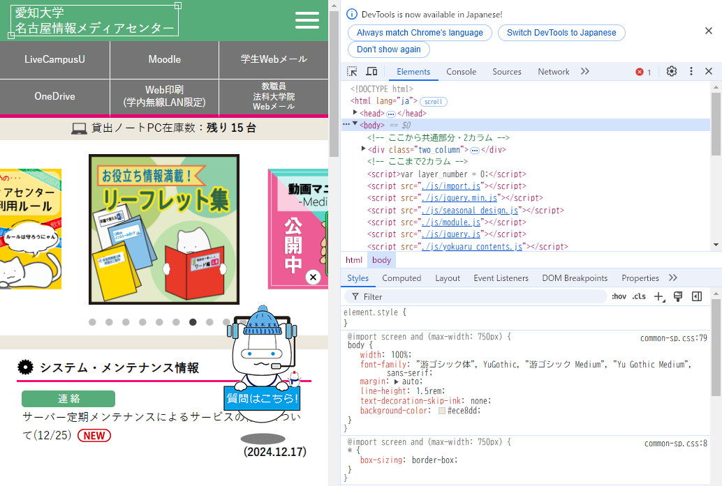 ホームページ上で[F12]キーを押すと、ホームページを構成する言語やカラーコードを見ることができます。