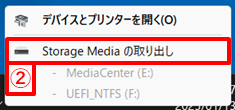 USBメモリは急に取り外すと破損する可能性があるため、以下の操作手順で安全に取り外してください。